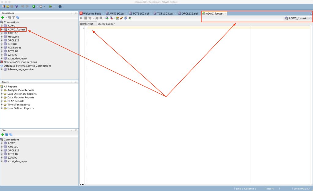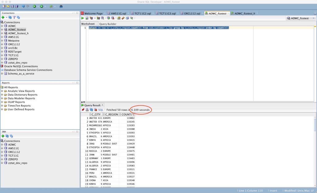 Now at SQL Developer using our initial created connection (with the fcotest_low connection) we will run the following query: