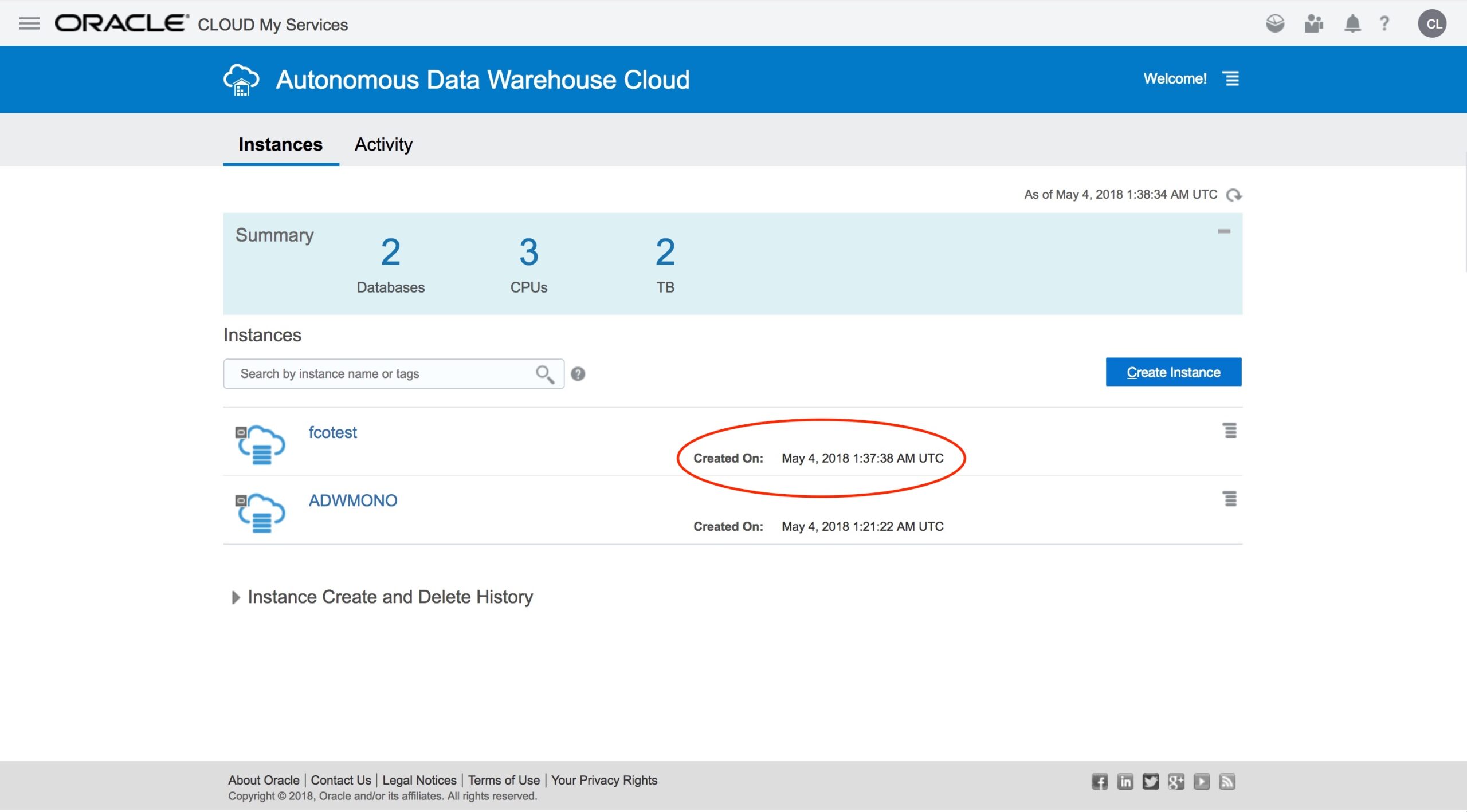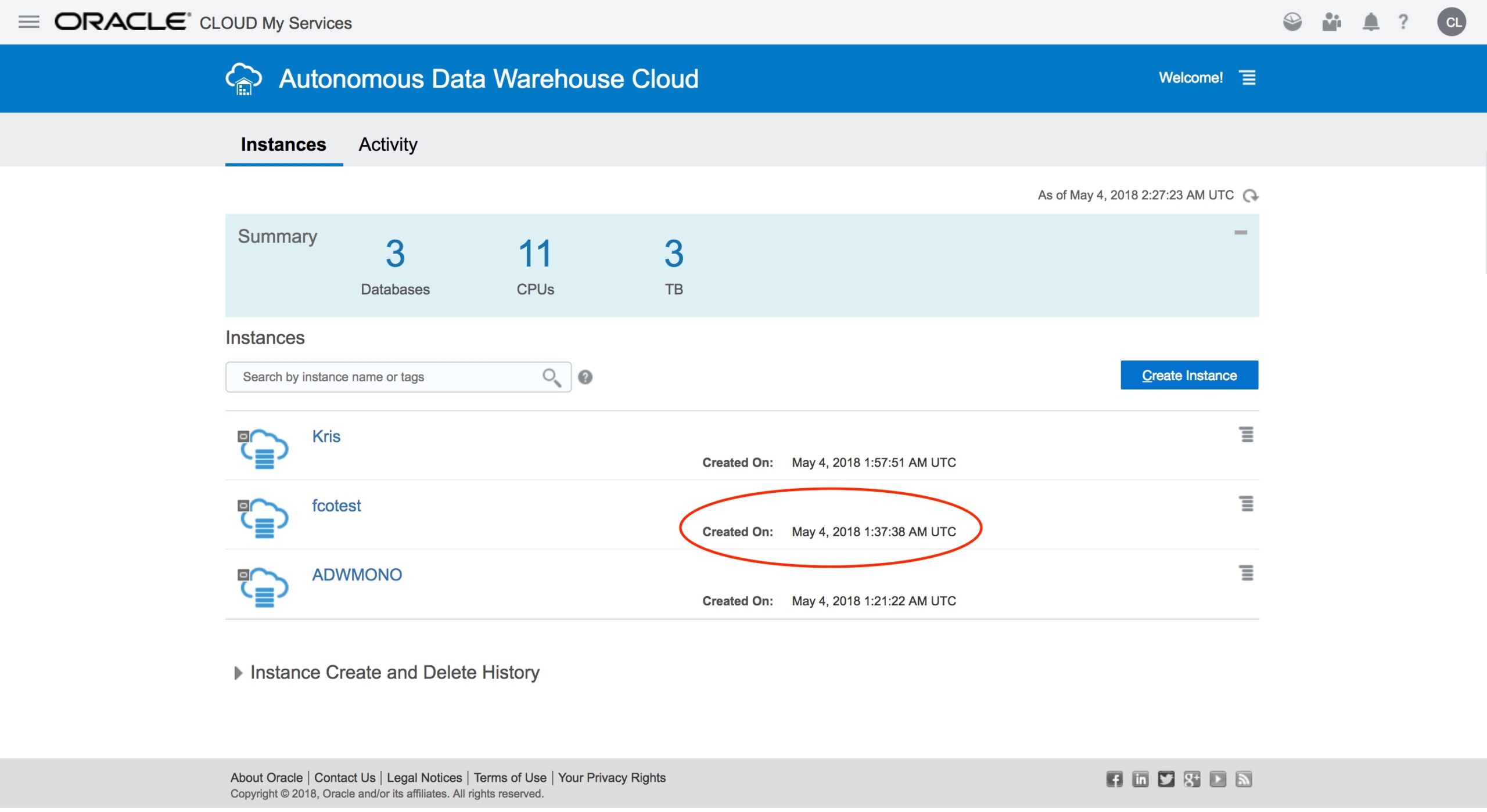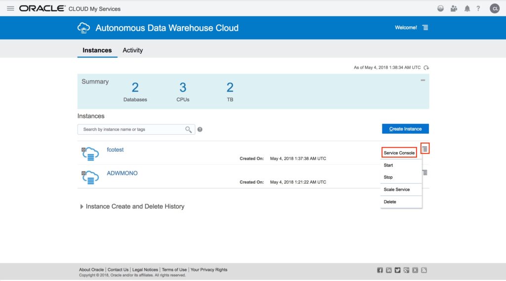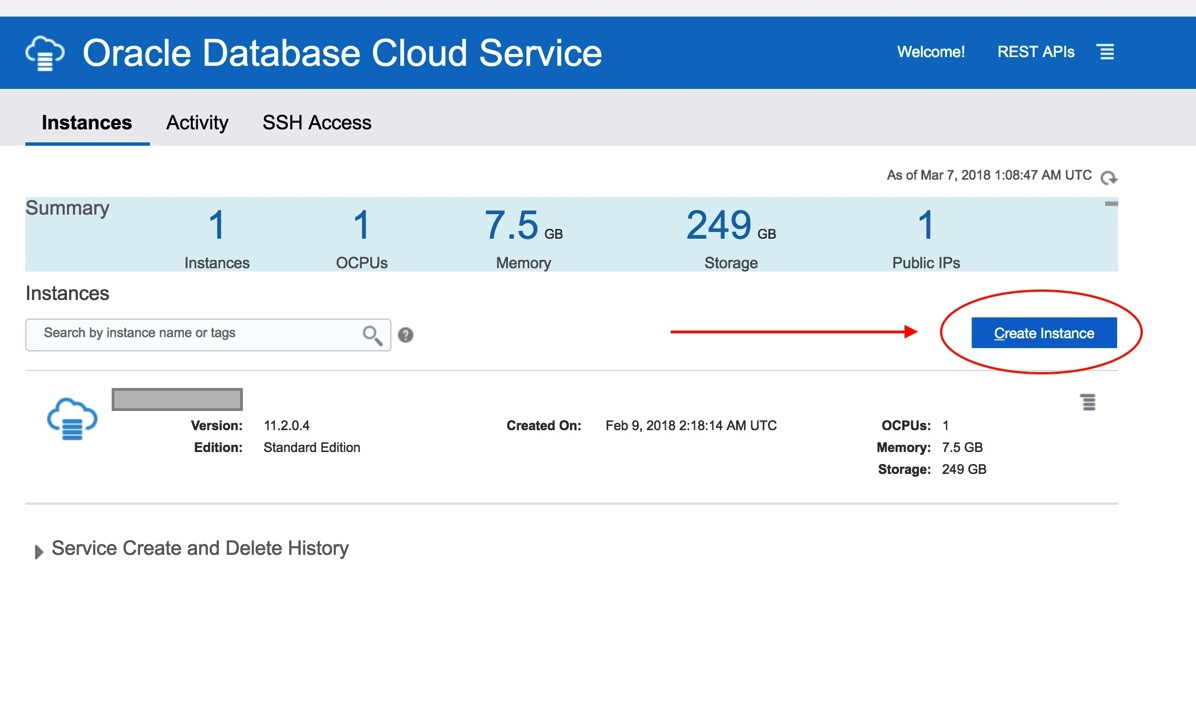 Now that you are at the Service Console main page please click on “Create Instance” .