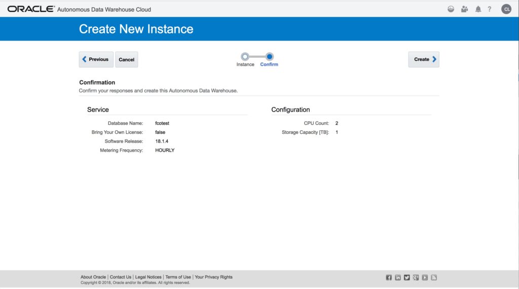 The ADWC creation process is very simple (to be honest, one of the simplest one I have ever seen). Just enter: