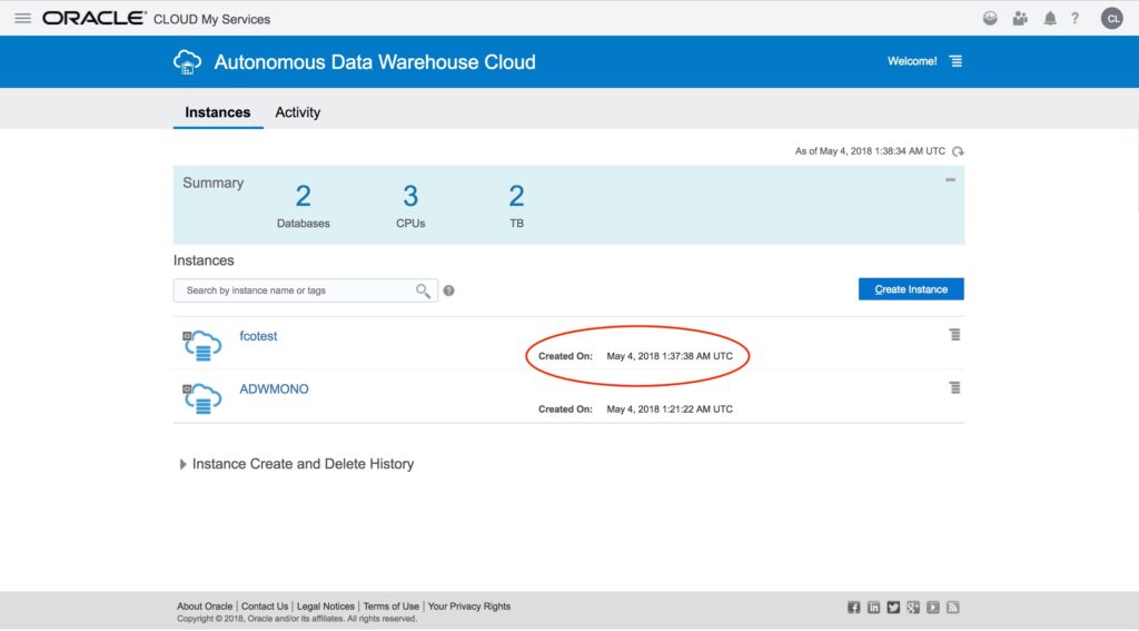 To provision an ADWC Instance please go to https://cloud.oracle.com/datawarehouse and click at “Try for Free” on the top right section.