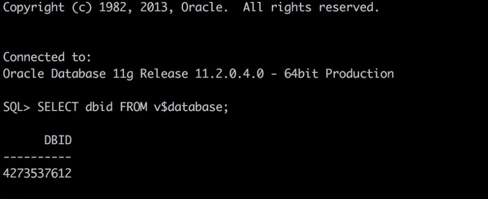 In the main time, let’s connect to our source database and check for the DBID. (We will need this information later)