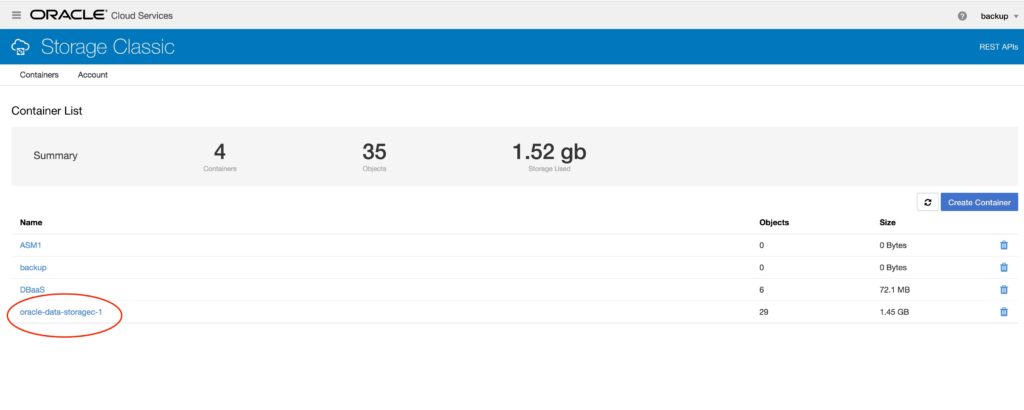 Oracle Database Backup Cloud Service is a secure, scalable, on-demand storage solution for backing up Oracle databases to Oracle Cloud. The service complements your existing backup strategy by providing an off-site storage location in the public cloud.