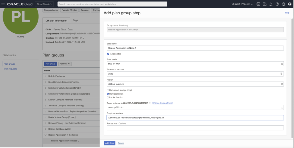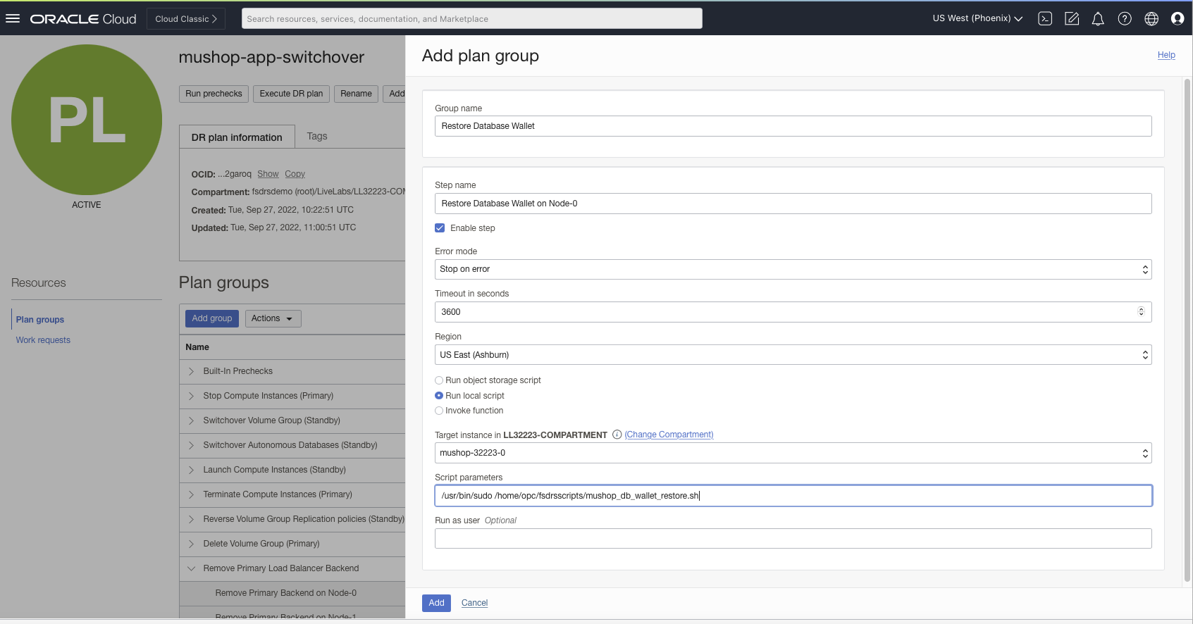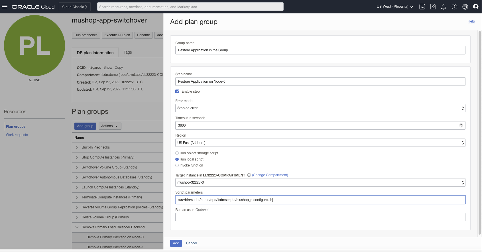 With this step we have all our DRPGs with all it members. Now it is time to create and customise a DR Switchover Plan. At the DRPG page at the standby region (Phoenix):