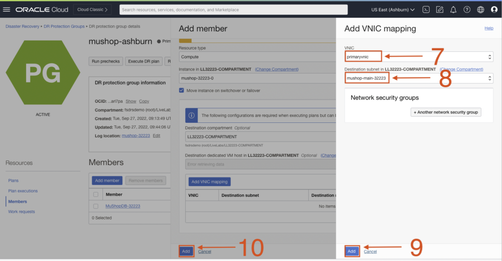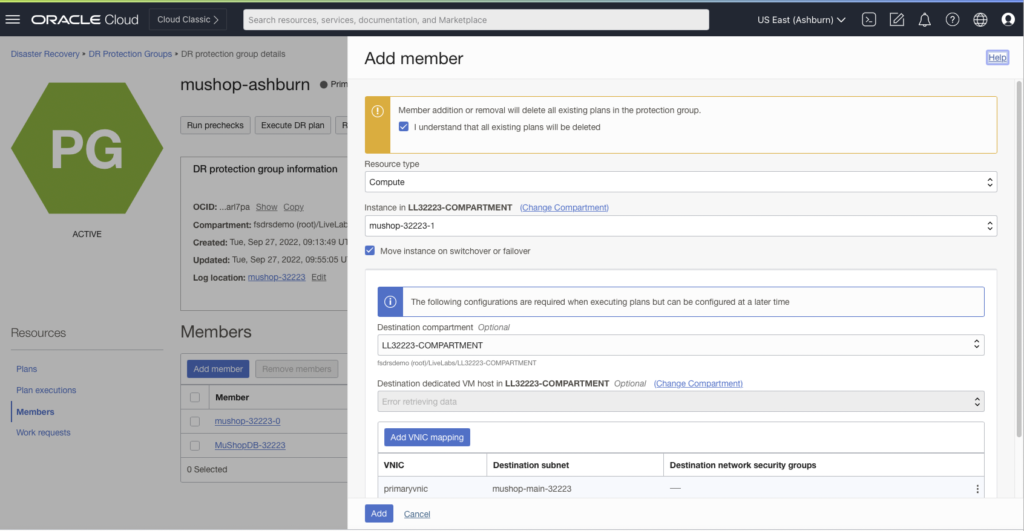 Now that we have all DRPGs created and associated, it is time to add members to each DRPG (primary and standby). For the primary (Ashburn) DRPG we will add:
