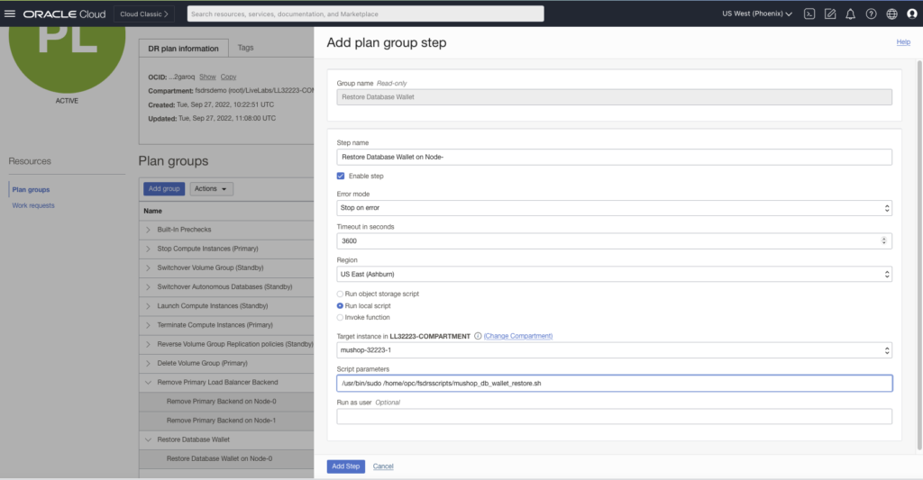 Now as previously done, we need to add another step for Restore Database Wallet on Node-1 in Restore Database Wallet plan group.